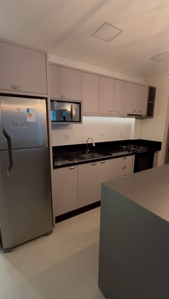 • 2 Quartos (1 suíte) • Sala de jantar • Cozinha • Banheiro social • Área de serviço • Sacada c/ churrasqueira • Ar condicionado • Vaga de garagem